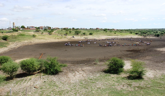 Sobre a lama seca do açude, população de São Domingos de mãos dadas pede urgência a limpeza do principal manancial